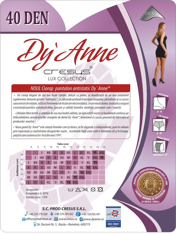 • Ciorap Dy'Anne tratat cu ioni de argint ce conferă proprietăți antimicrobiene și antialergice, ce rezistă la peste 30 de spălări.