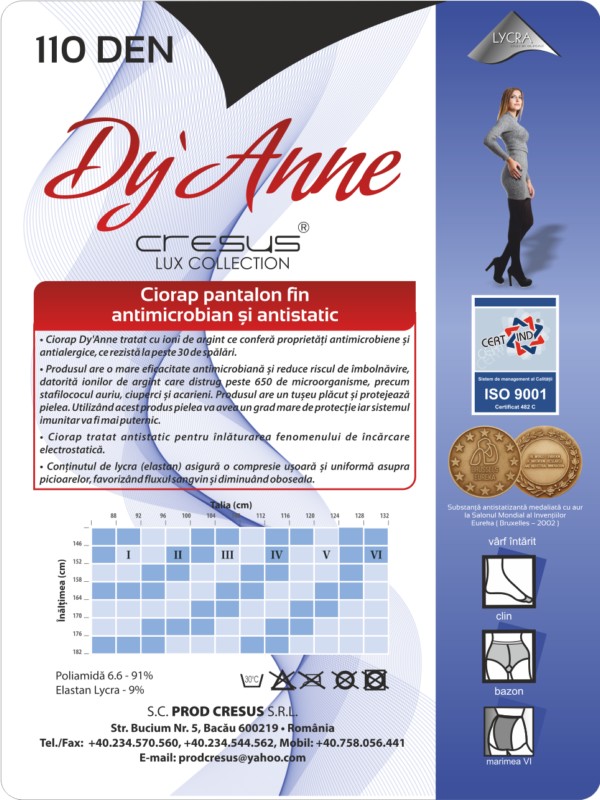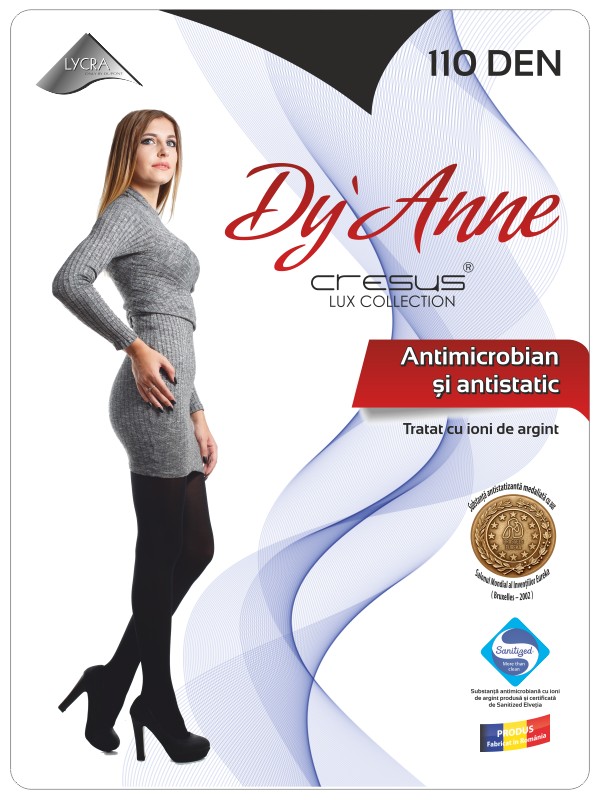 • Ciorap Dy'Anne tratat cu ioni de argint ce conferă proprietăți antimicrobiene și antialergice, ce rezistă la peste 30 de spălări.